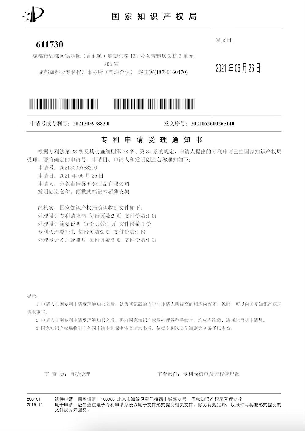 ◆ 專利權: 擁有8項由國家知識產(chǎn)權局頒發(fā)的外觀設計專利證書
